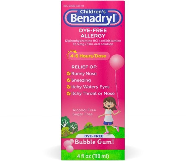 Give your child effective relief from common allergy symptoms with Children’s Benadryl Allergy Liquid. This liquid allergy medicine relieves runny nose, sneezing, itchy nose, itchy throat, and itchy, watery eyes. It is intended for children ages 6 to 11 and comes with a convenient dosing cup.