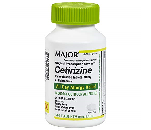 Cetirizine is an antihistamine used to relieve allergy symptoms such as watery eyes, runny nose, itching eyes/nose, sneezing, hives, and itching. It works by blocking a certain natural substance (histamine) that your body makes during an allergic reaction.